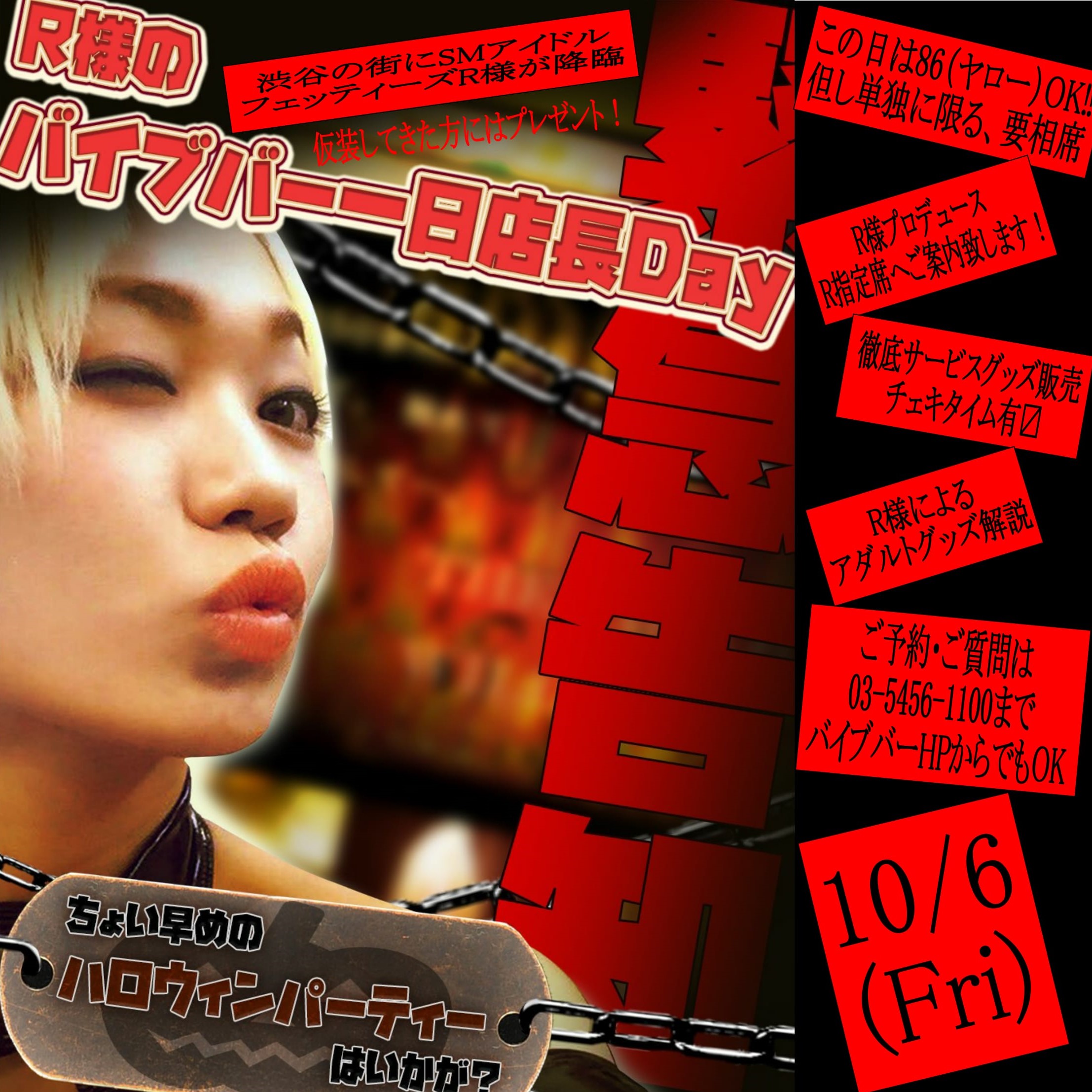 毎年ハロウィンで賑わう渋谷の街にSMアイドルフェッティーズのR様が降臨‼️350本以上のバイブが集まるバイブバーにて1日店長を務めます